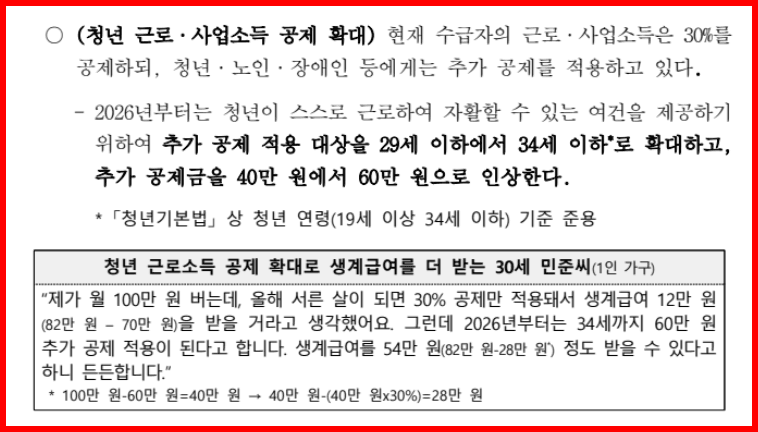 ‘일하면 수급 끊긴다’는 불안을 줄이기 위해 2026년부터 청년 소득공제 기준이 확대됩니다.