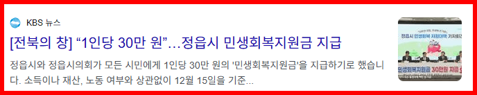 - 지원대상: 2025년 12월 15일 이전 정읍시에 주민등록된 시민