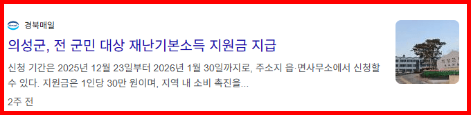 - 지원대상: 2025년 11월 30일 기준 의성군 주민등록자 (결혼이민자 증빙 가능)